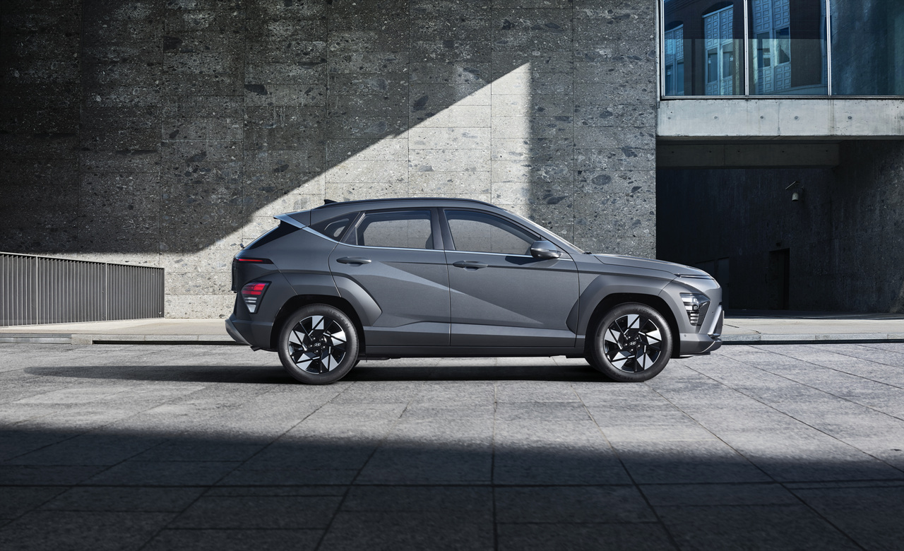 코나 하이브리드는 외관 디자인에서 젊고 역동적인 이미지를 강조합니다. 특히 블랙 익스테리어 트림은 고급스러운 블랙 포인트를 통해 차별화된 스타일을 제공합니다. 전면부는 슬림한 LED 헤드램프와 와이드 그릴이 인상적이며, 후면부는 간결하면서도 강렬한 인상을 줍니다.