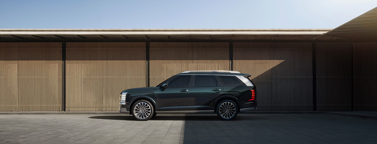 팰리세이드는 ‘대형 SUV는 투박하다’는 편견을 깨는 세련된 디자인으로 주목받고 있습니다. 전면부는 대형 파라메트릭 쉴드 그릴과 수직형 LED 주간주행등(DRL)이 강인한 인상을 주며, 측면은 유려한 캐릭터 라인과 크롬 몰딩이 고급스러움을 더합니다. 후면부는 수직형 리어램프와 와이드한 범퍼 디자인으로 안정감 있는 비율을 완성합니다.