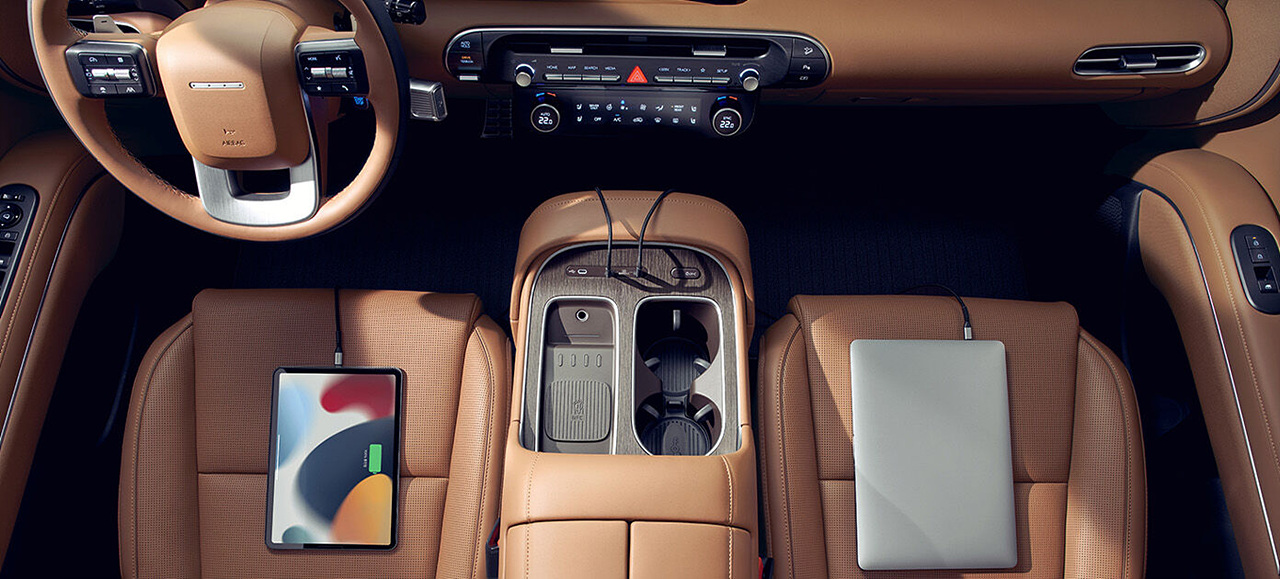 엔진은 2.5L 싱글 터보 I4 엔진과 전기 모터가 결합된 하이브리드 시스템으로, 합산 출력은 334마력에 달합니다. 변속기는 6단 자동이며, 전륜구동과 AWD 옵션이 제공됩니다. 차량의 전장은 5,060mm, 전폭은 1,980mm, 전고는 1,805mm로, 대형 SUV로서의 공간성과 안정감을 동시에 갖추고 있습니다.